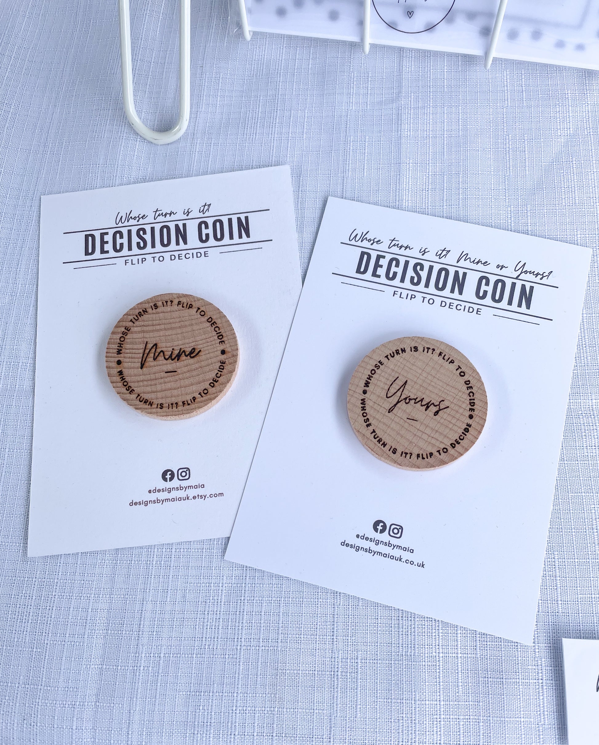Do you struggle to decide whose turn it is to choose what's for dinner, or where you're going for date night? Or do you need something to help pick who is doing the washing up or taking the bins out? Us too! We've got you covered with our decision coin.