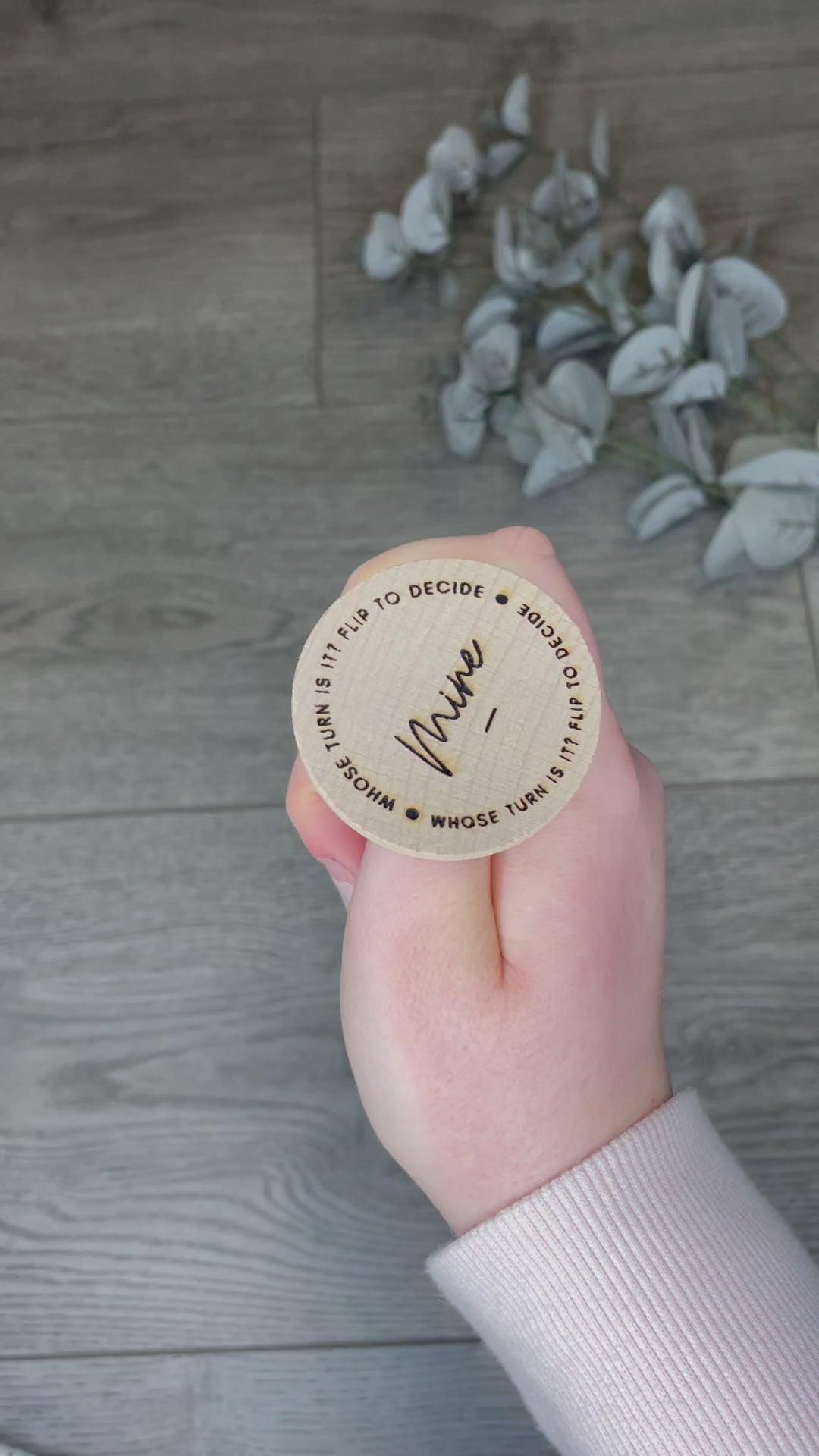 Decision Coin | Whose Turn Is It? | Flip to Decide Coin | Wooden | Couples Gift | Novelty | Funny | Valentine's Present | Anniversary