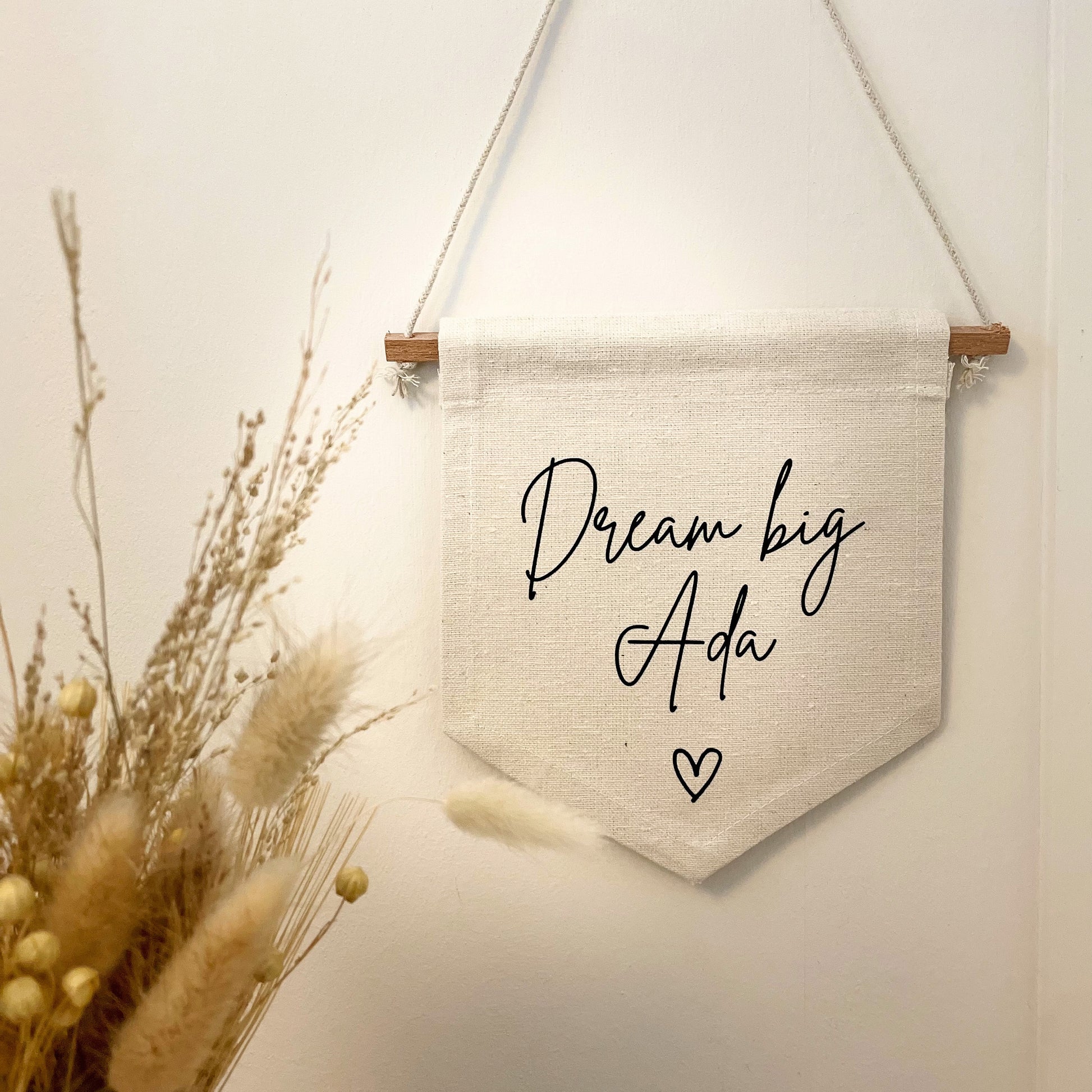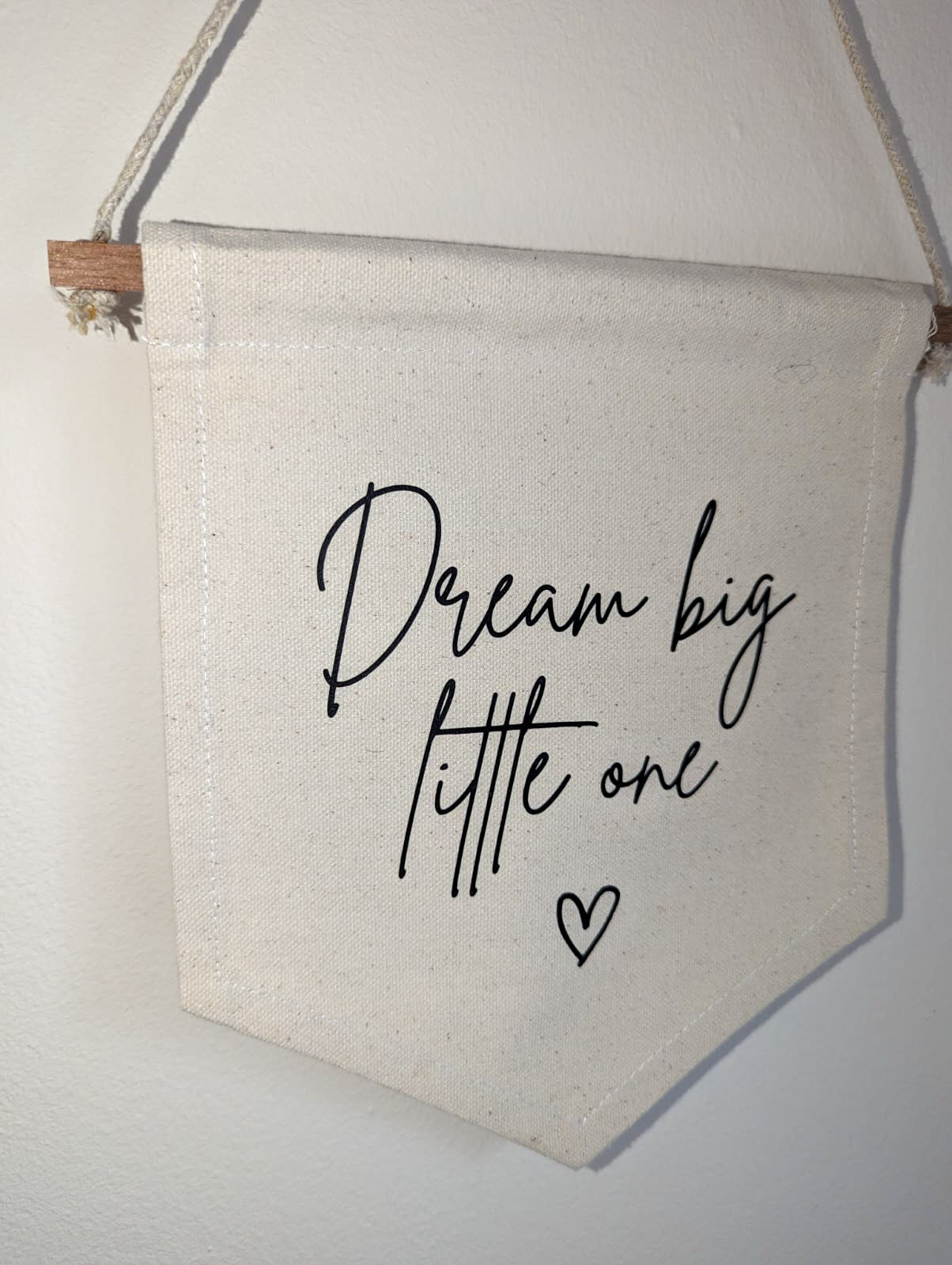 'Dream big little one' canvas wall hanging flag banner 🤍