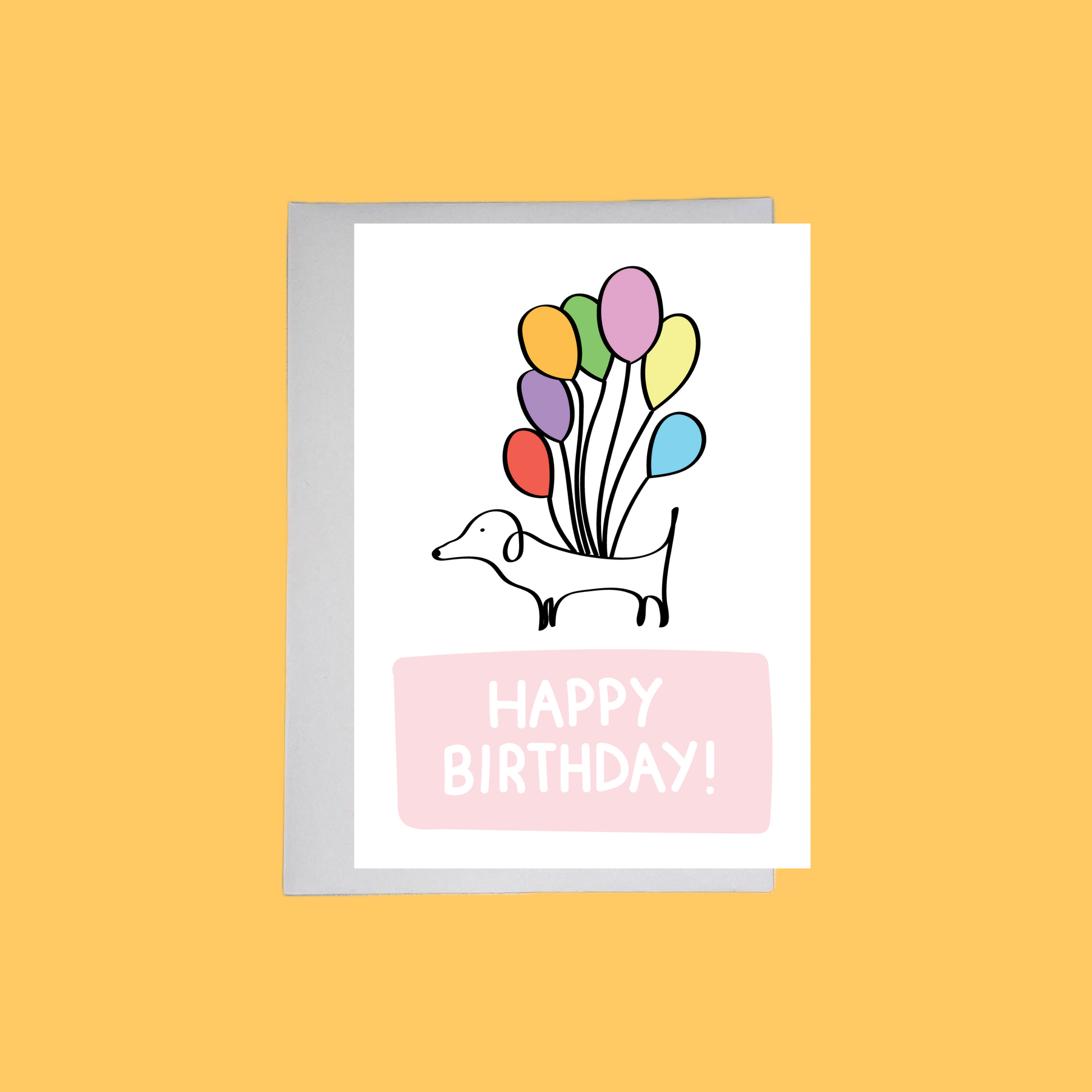 Celebrate a special someone's birthday in the most adorable way with our charming Happy Birthday greeting card featuring a delightful dachshund surrounded by vibrant balloons! This A6 size card is digitally designed & printed on high-quality 350gsm silk coated card stock.