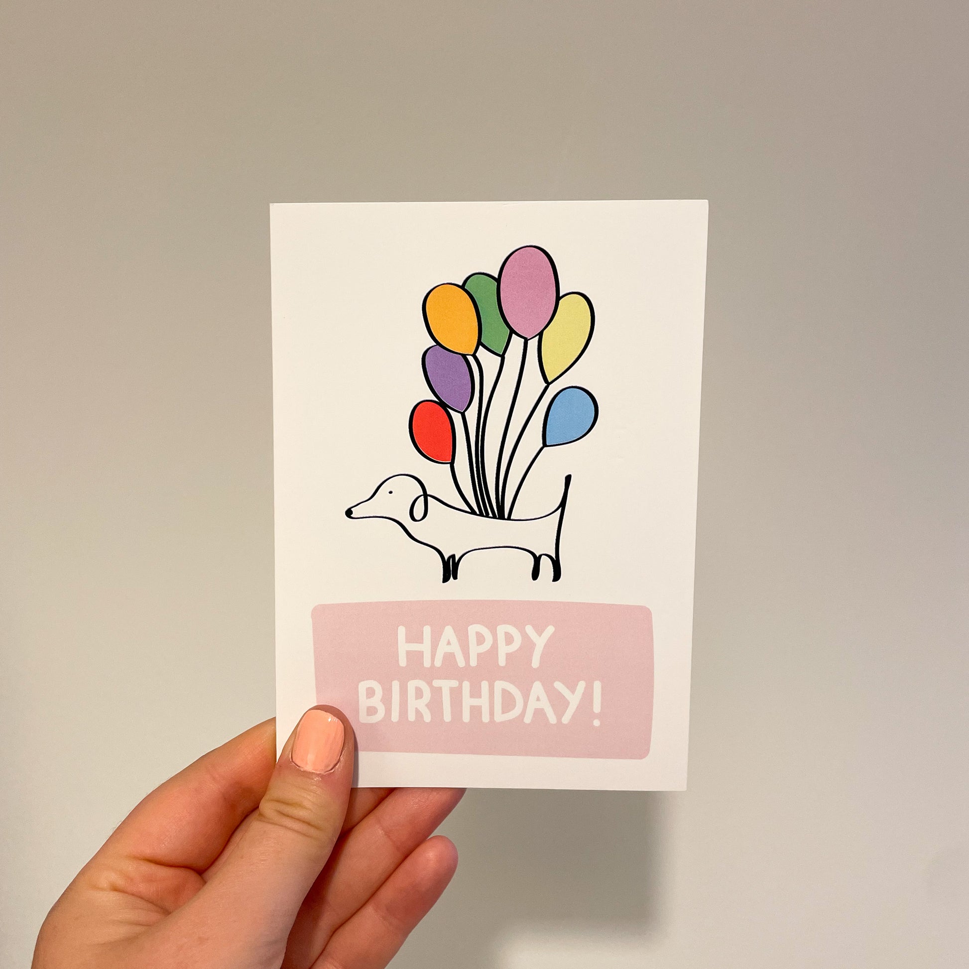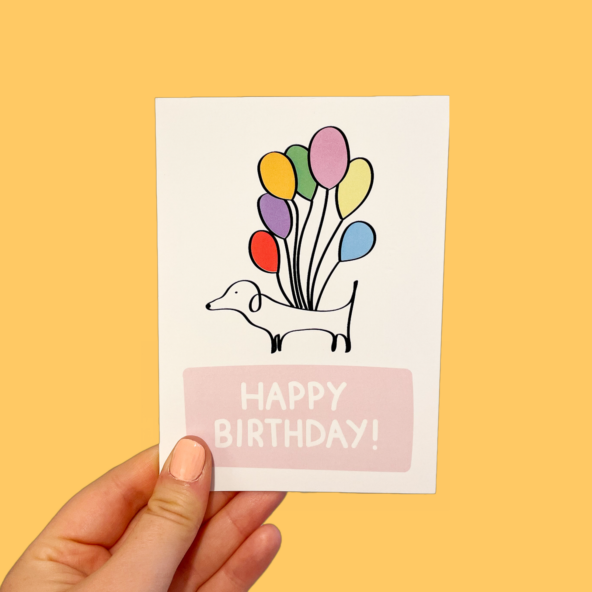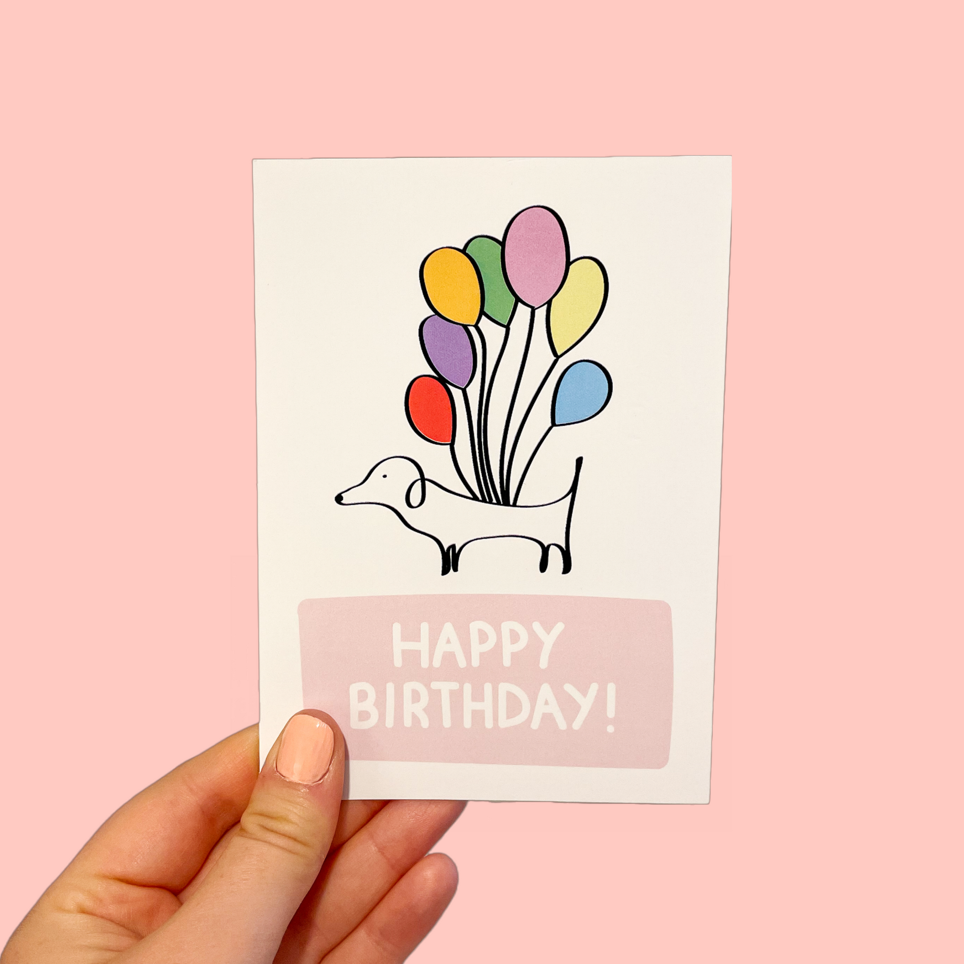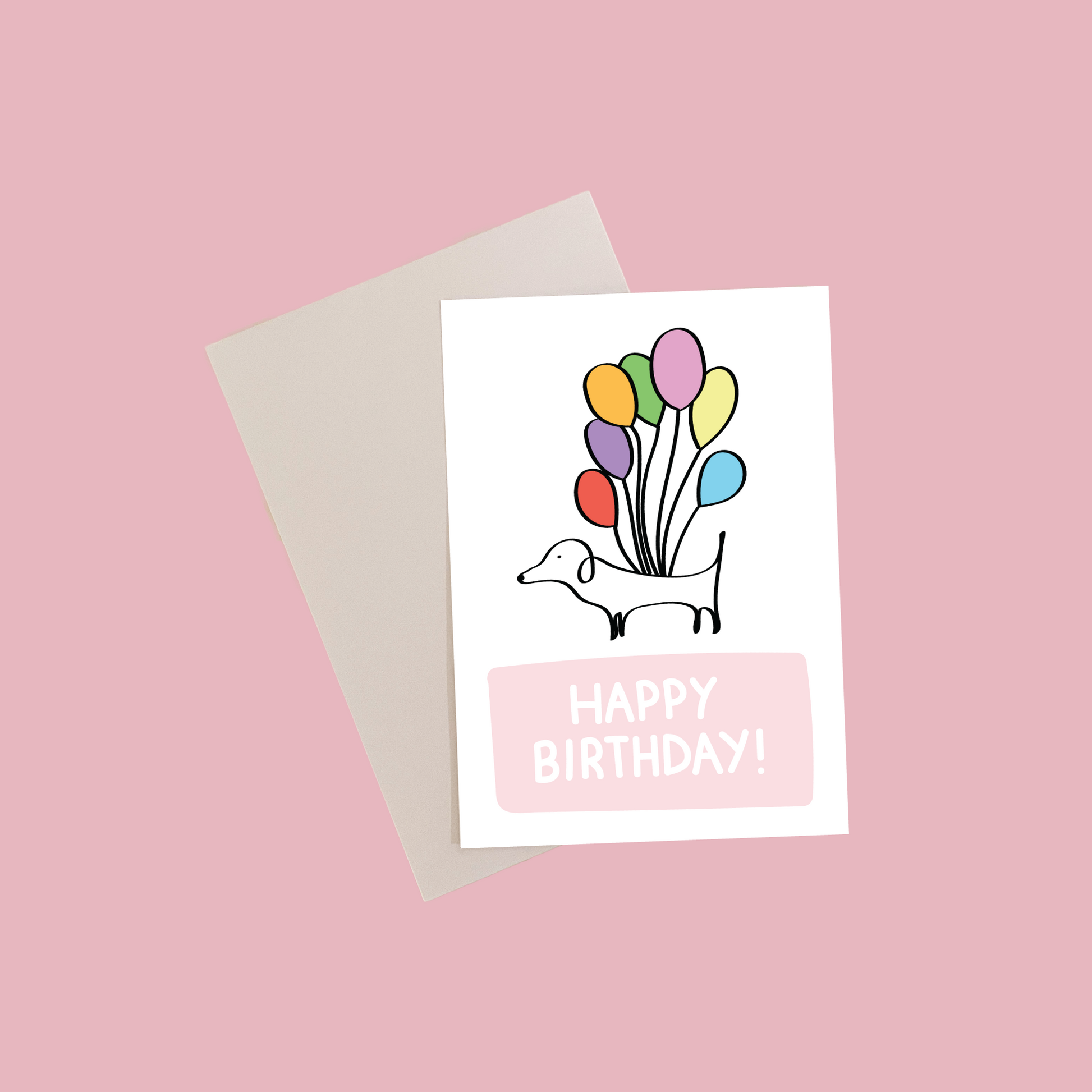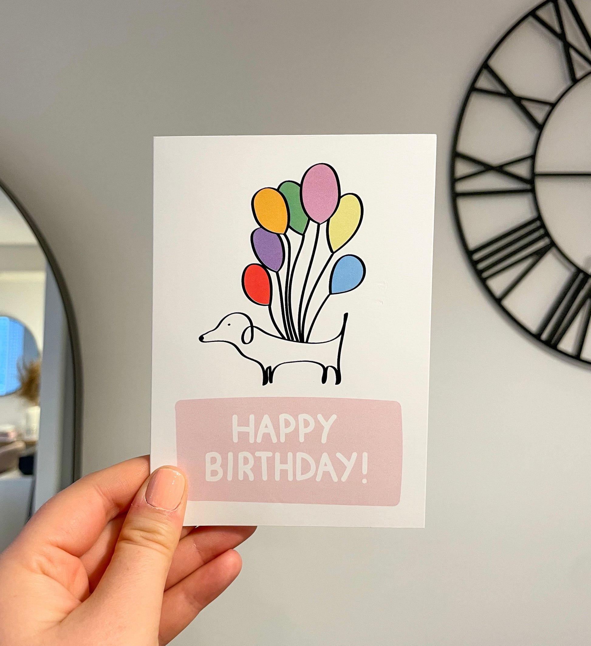 Happy Birthday Sausage Dog Greeting Card 🎈 | A6 greeting card with envelope