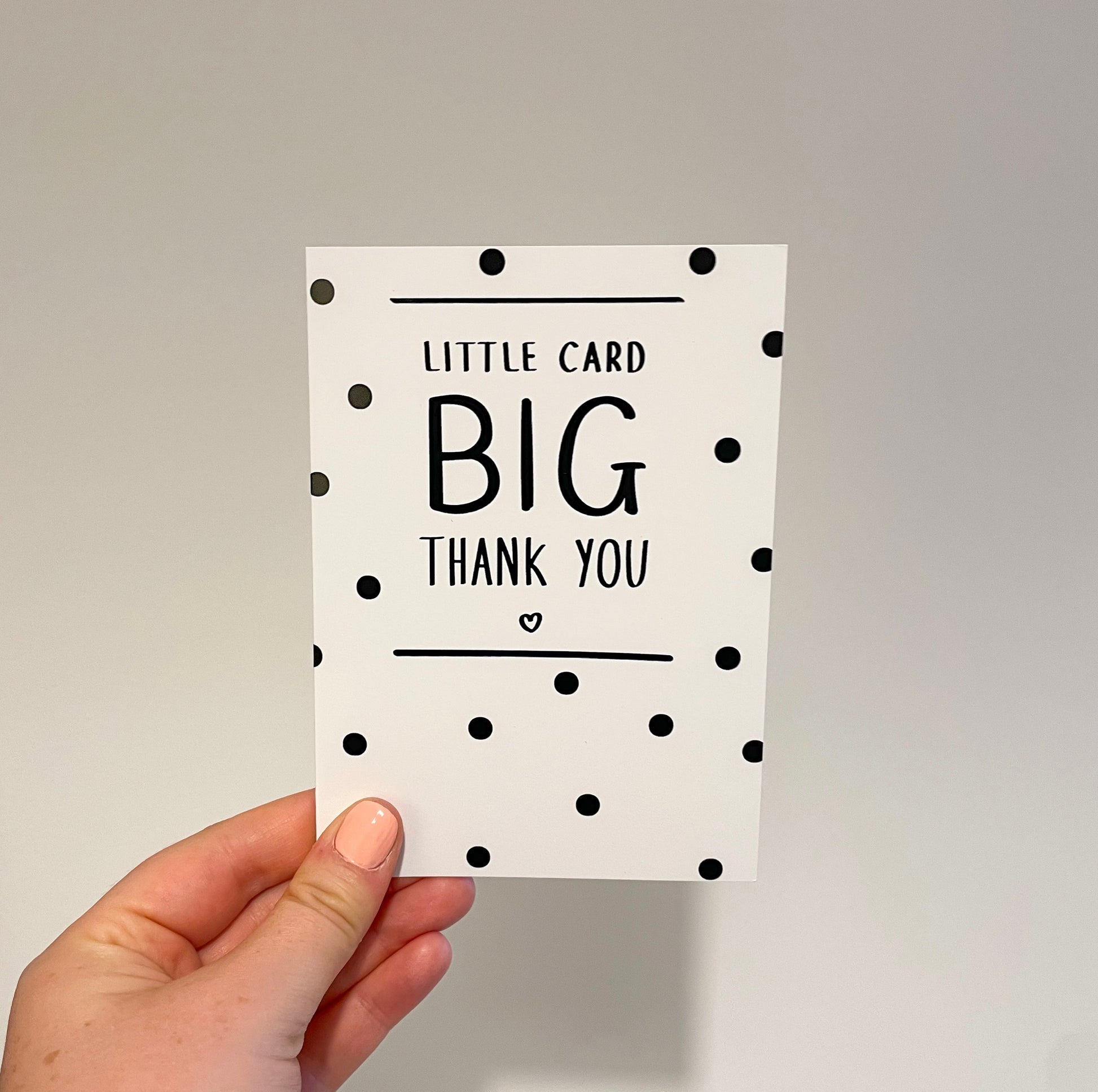 Say a big thank you with our delightful 'Little Card BIG Thank You' polka dot greeting card. For those times when you feel like you can never show your appreciation enough.