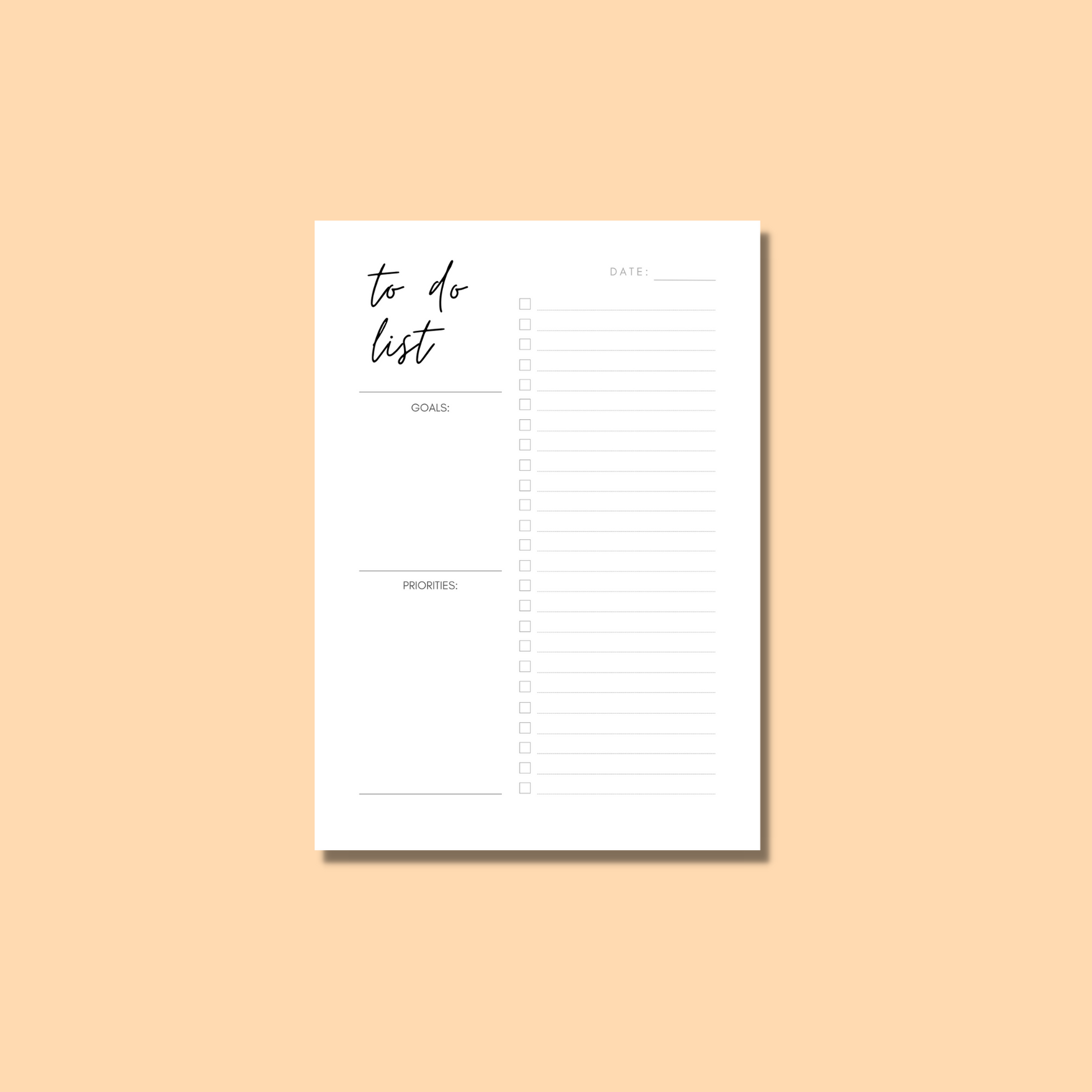 Minimalist To Do List | Goals & Priorities Planner | 50 Page Notepad | Planner | Organiser