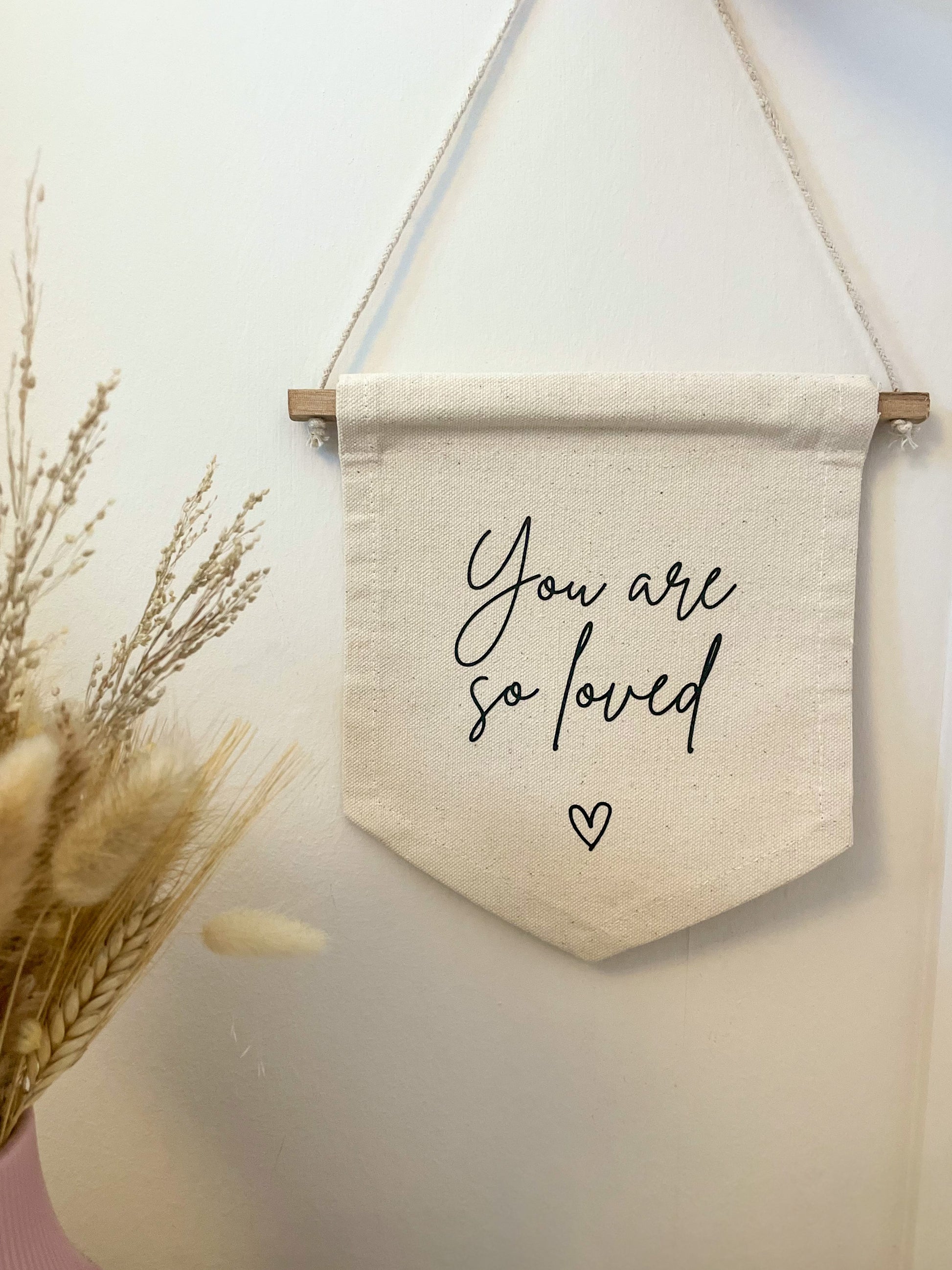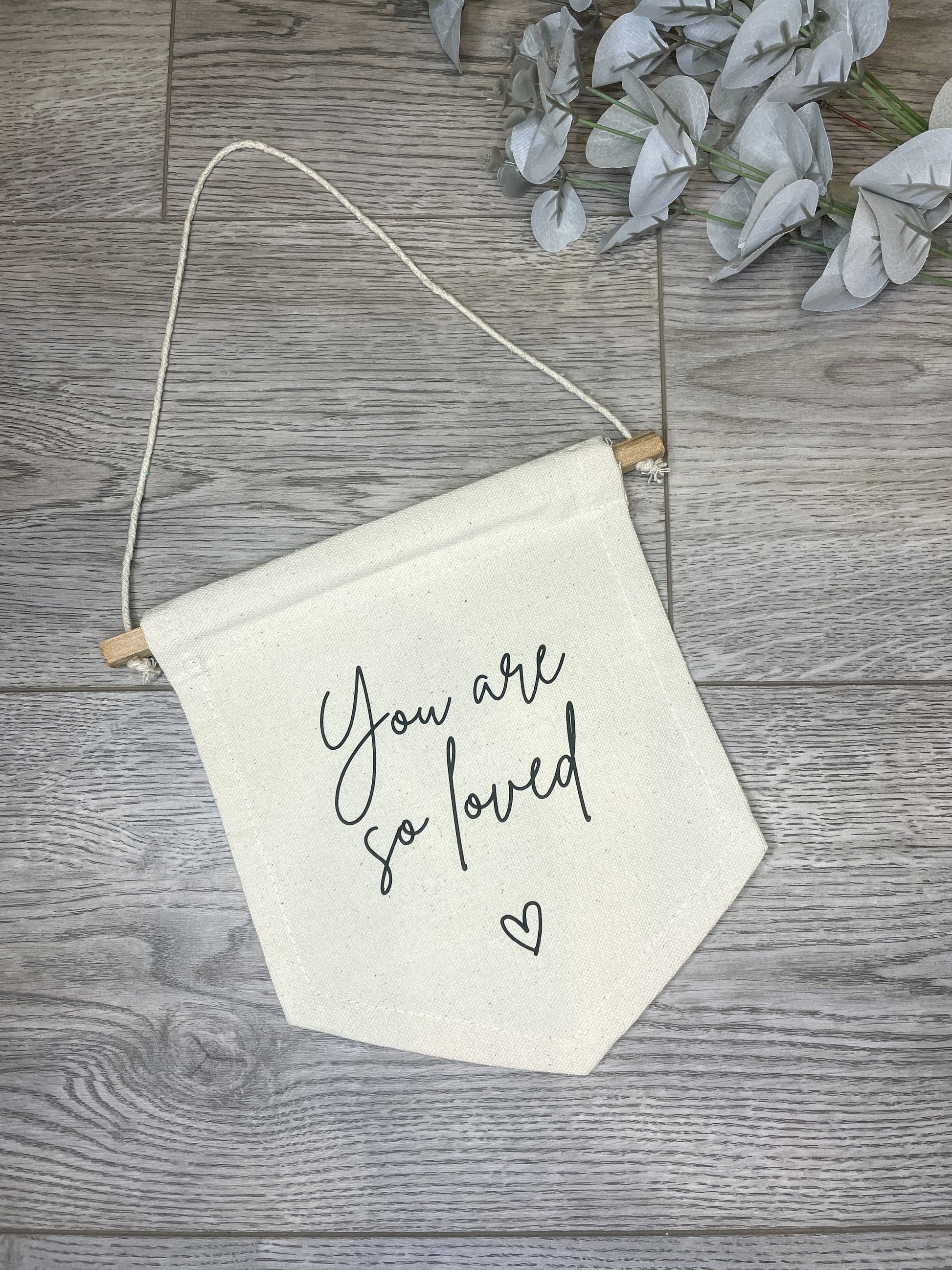 'You are so loved' Wall Hanging Flag Banner | Neutral Nursery Decor | Children's Bedroom | Nursery Wall Hanging | Personalised Canvas